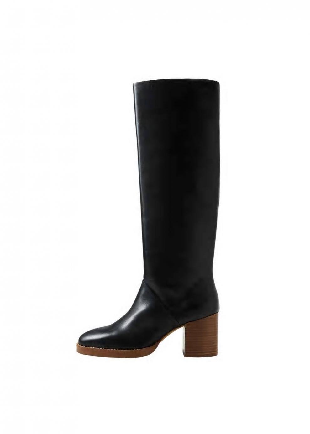 Mujer Bota piel tacón Negro | Zapatos Mango