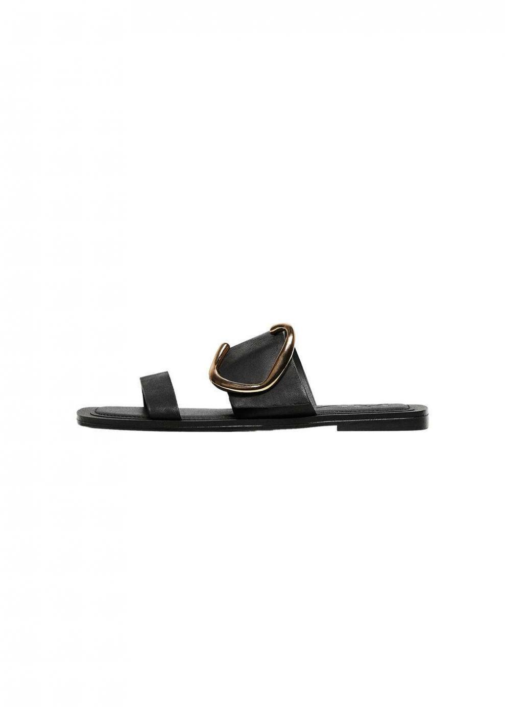 Mujer Sandalia piel hebilla Negro | Zapatos Mango