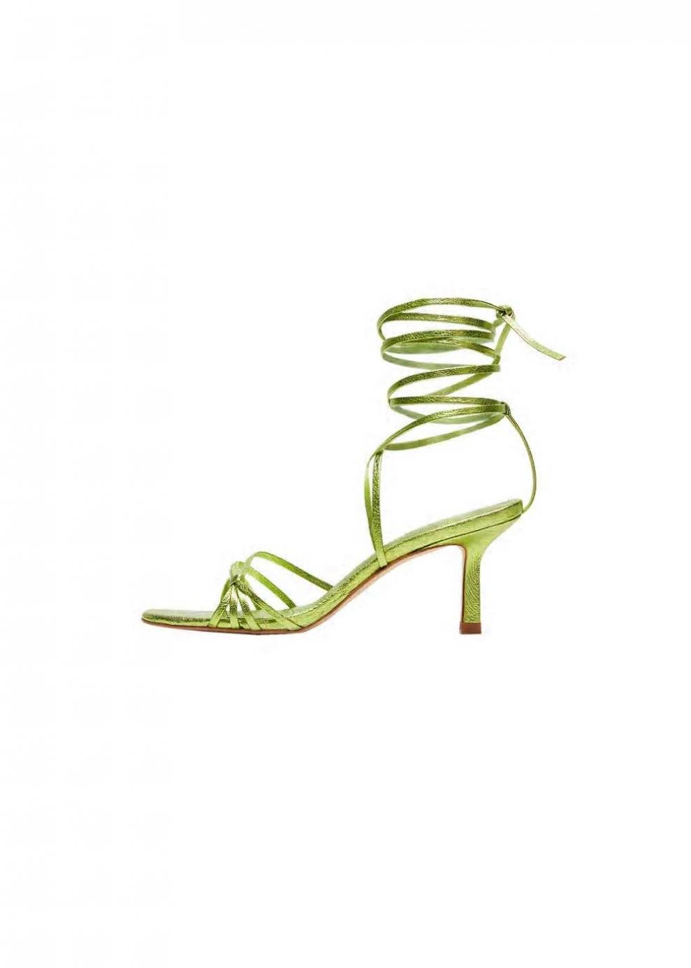 Mujer Sandalia piel metalizada Verde | Zapatos Mango