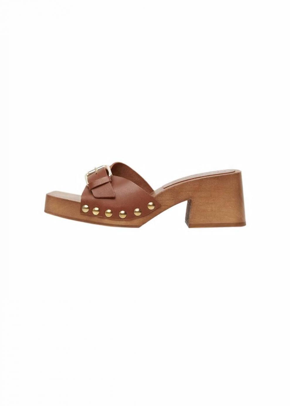 Mujer Sandalia piel tachuelas Marrón | Zapatos Mango