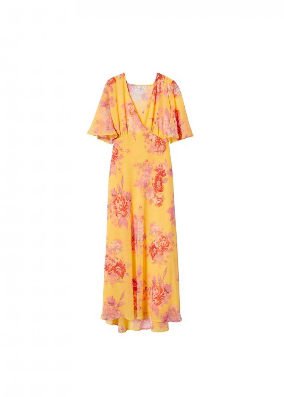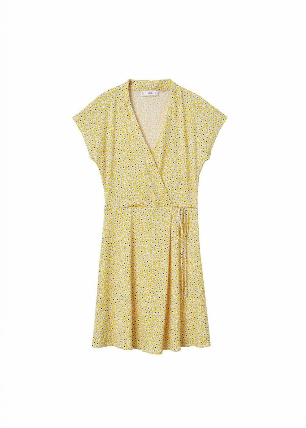 Mujer Vestido cruzado estampado Amarillo | Vestidos y monos Mango