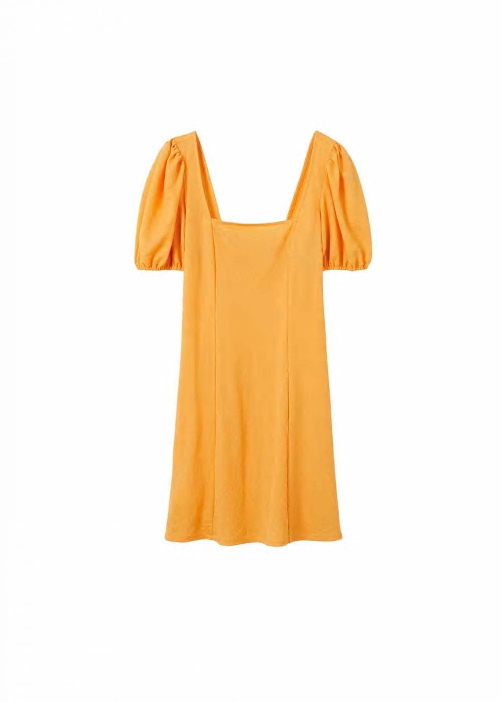 Mujer Vestido fluido manga abullonada Amarillo | Vestidos y monos Mango