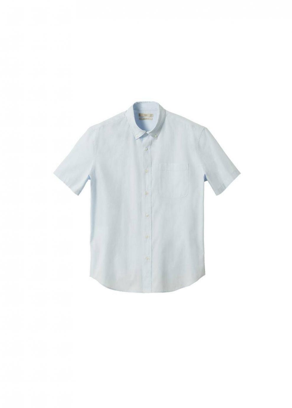 Hombre Camisa algodón manga corta Azul Celeste | Camisas Mango
