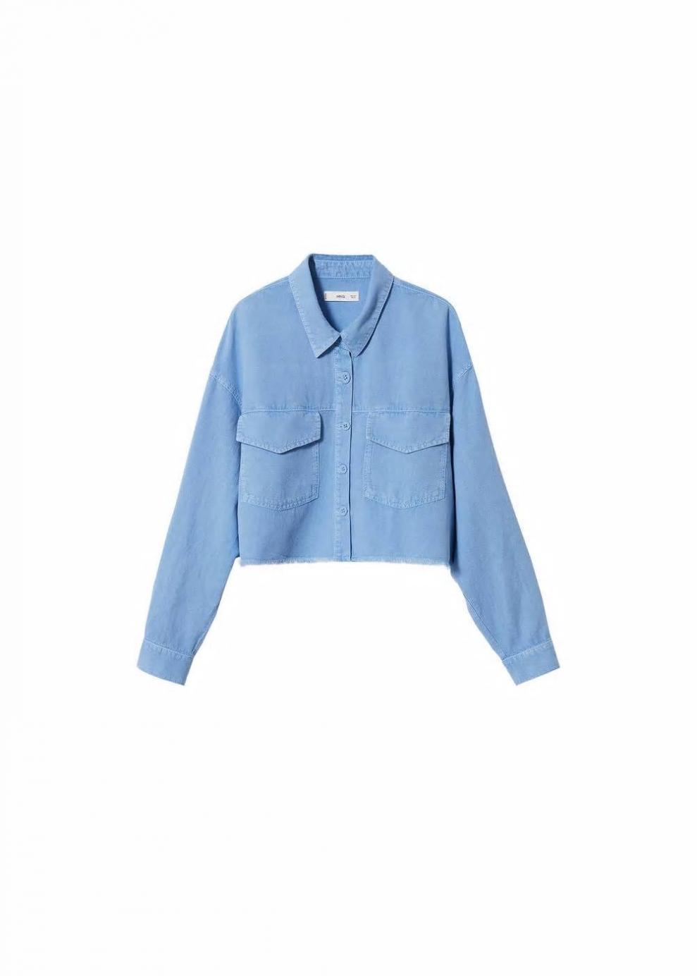 Mujer Camisa algodón lino Azul Celeste | Camisas Mango