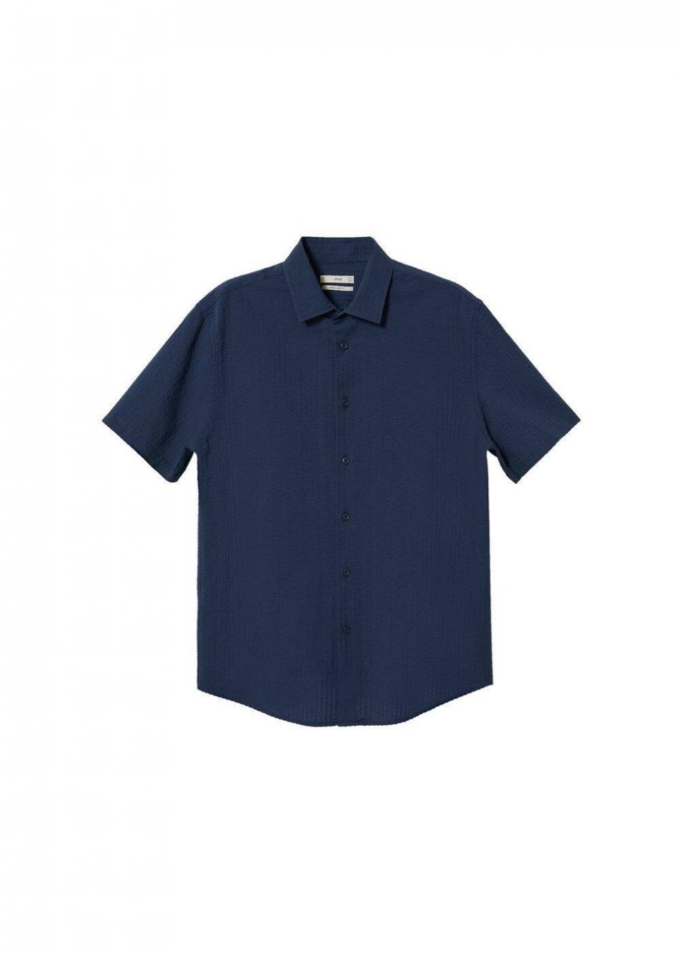Hombre Camisa algodón seersucker Azul Marino Oscuro | Camisas Mango