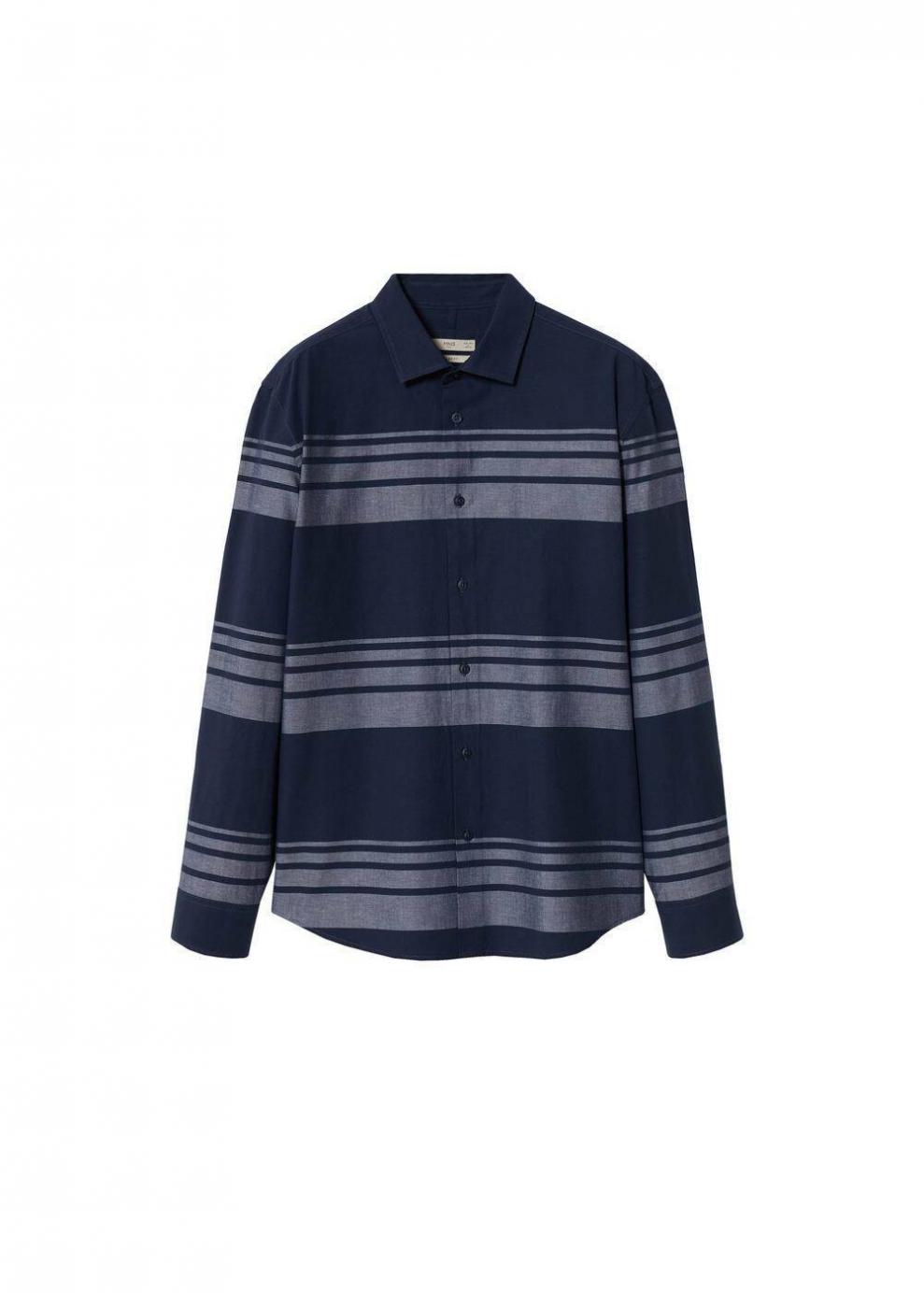 Hombre Camisa algodón ligero rayas Azul Marino Oscuro | Camisas Mango