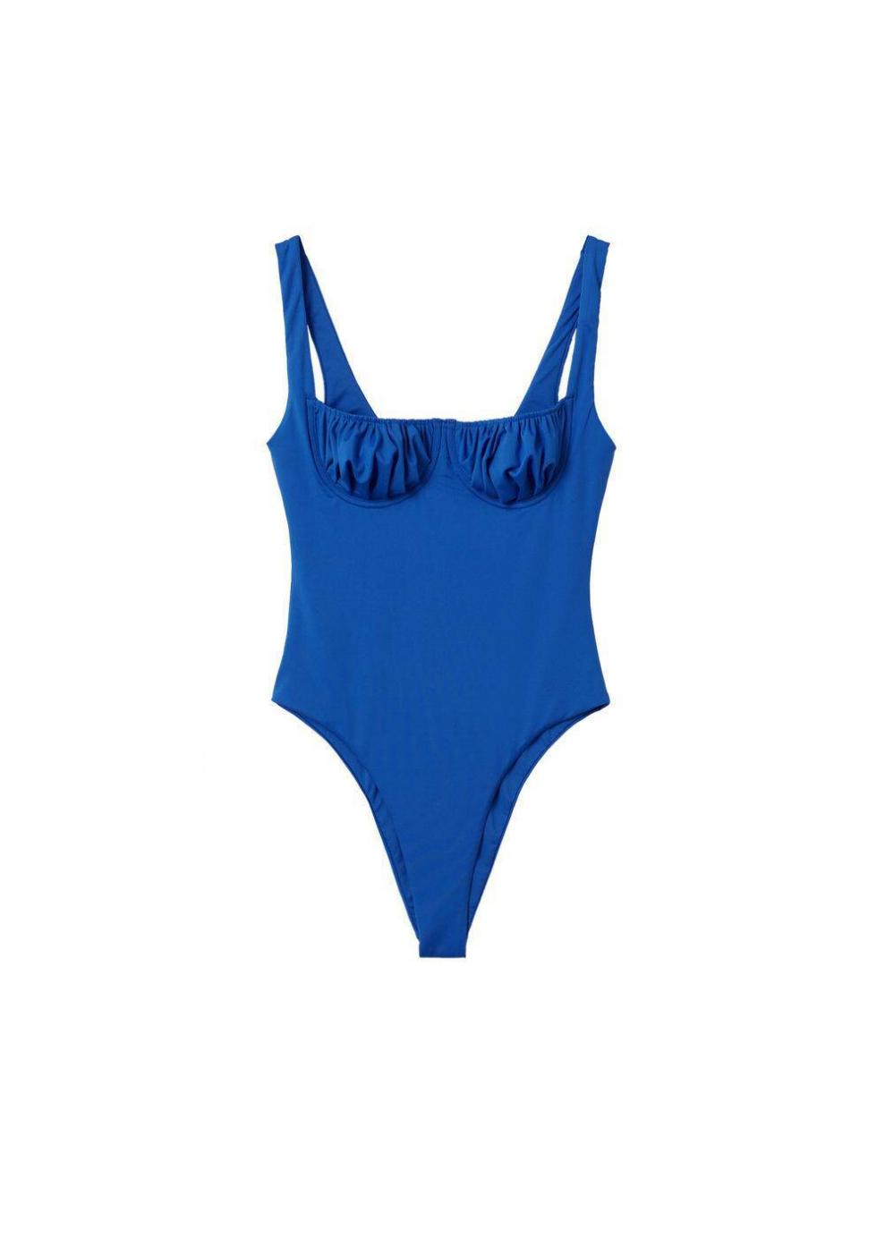Mujer Bañador detalles fruncidos Azul | Bikinis y bañadores Mango
