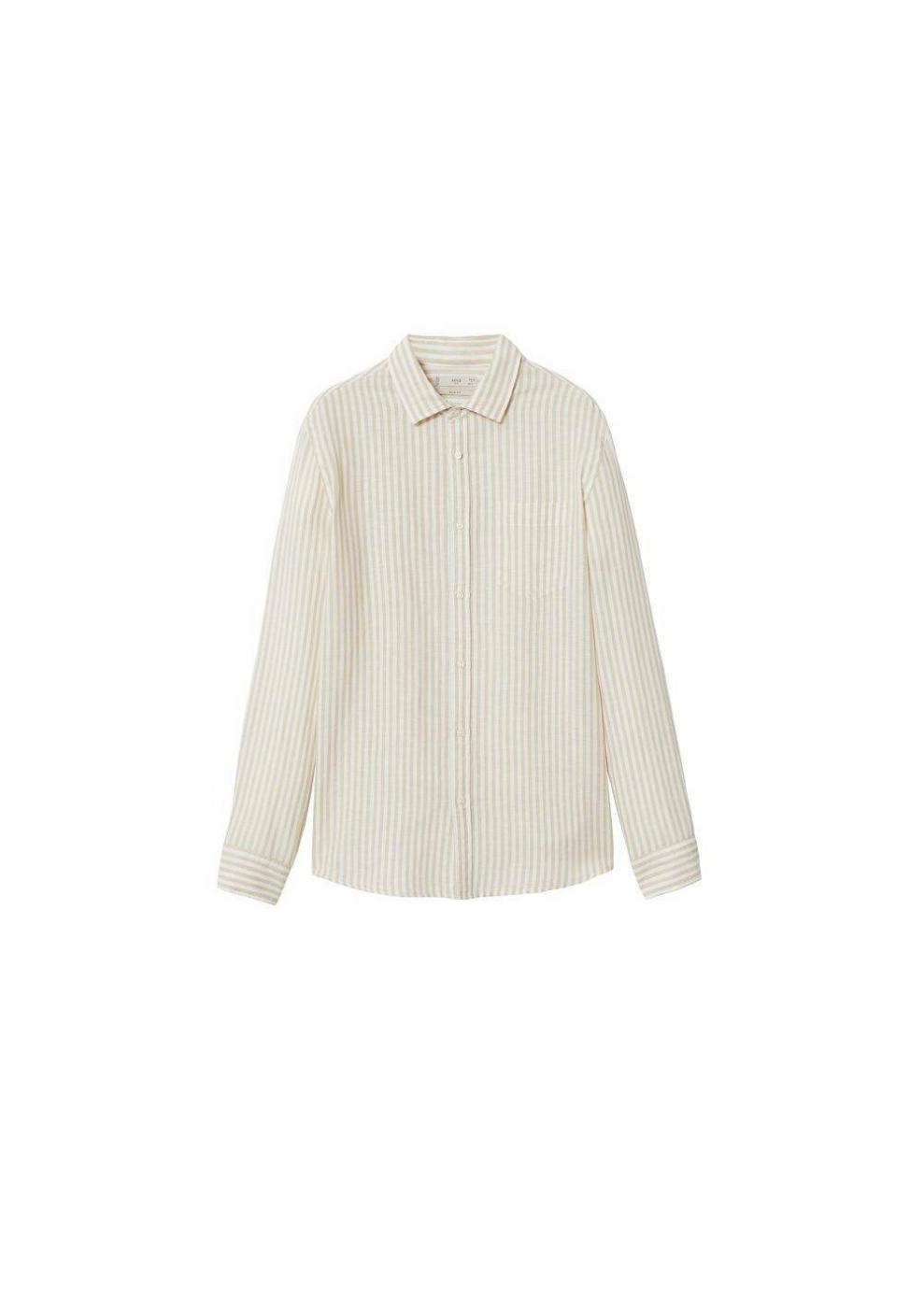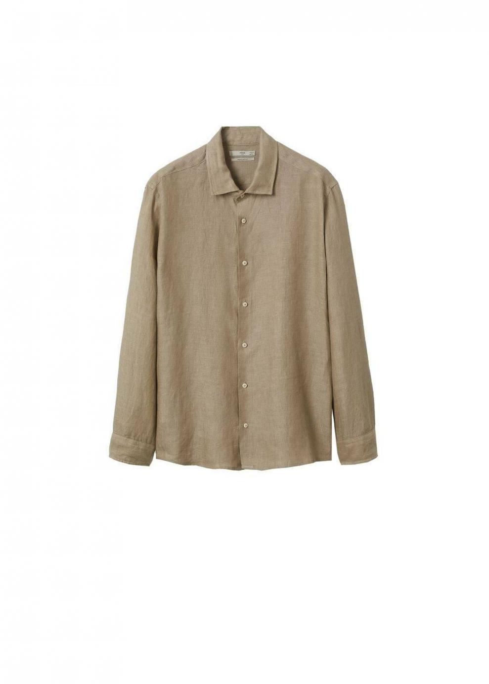 Hombre Camisa slim fit lino rayas Beige | Camisas Mango