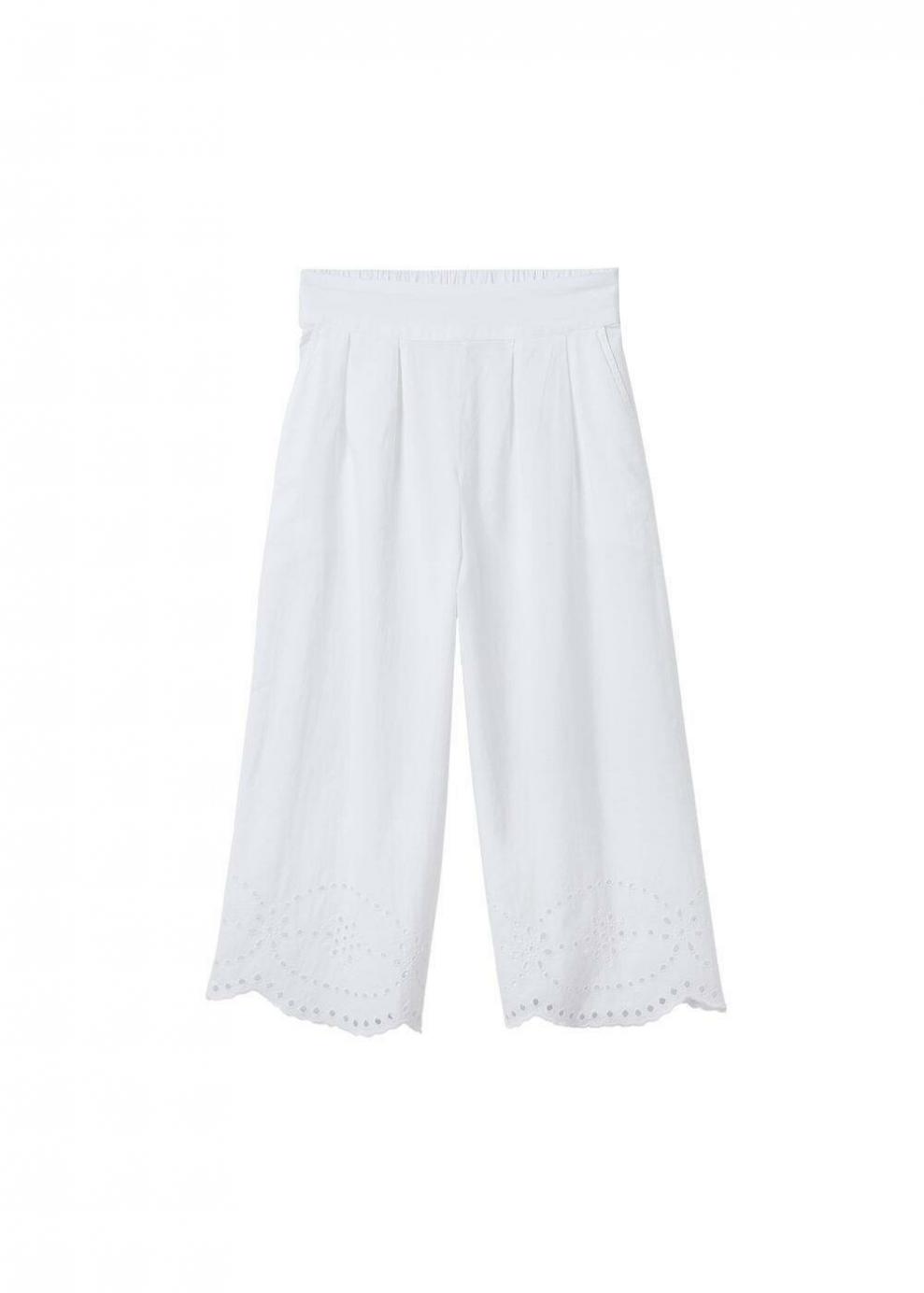 Mujer Pantalón algodón bordado Blanco | Pantalones Mango
