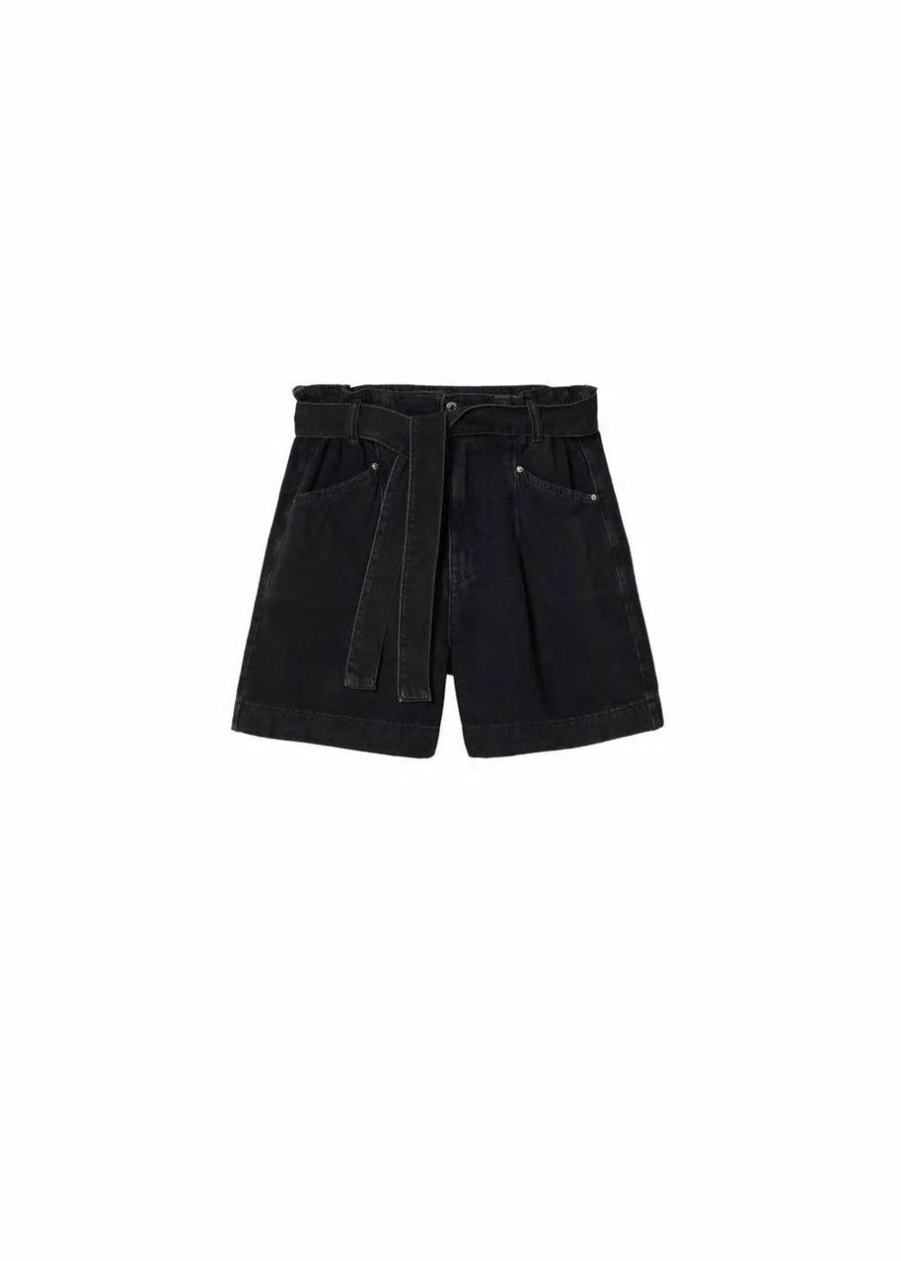 Mujer Short vaquero paperbag Denim Negro | Shorts Mango