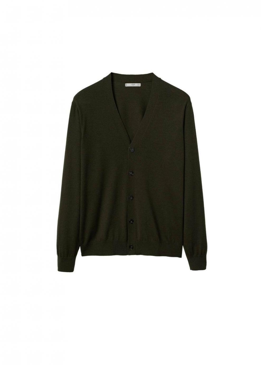 Hombre Cárdigan lana merino lavable Khaki | Jerséis y cárdigans Mango