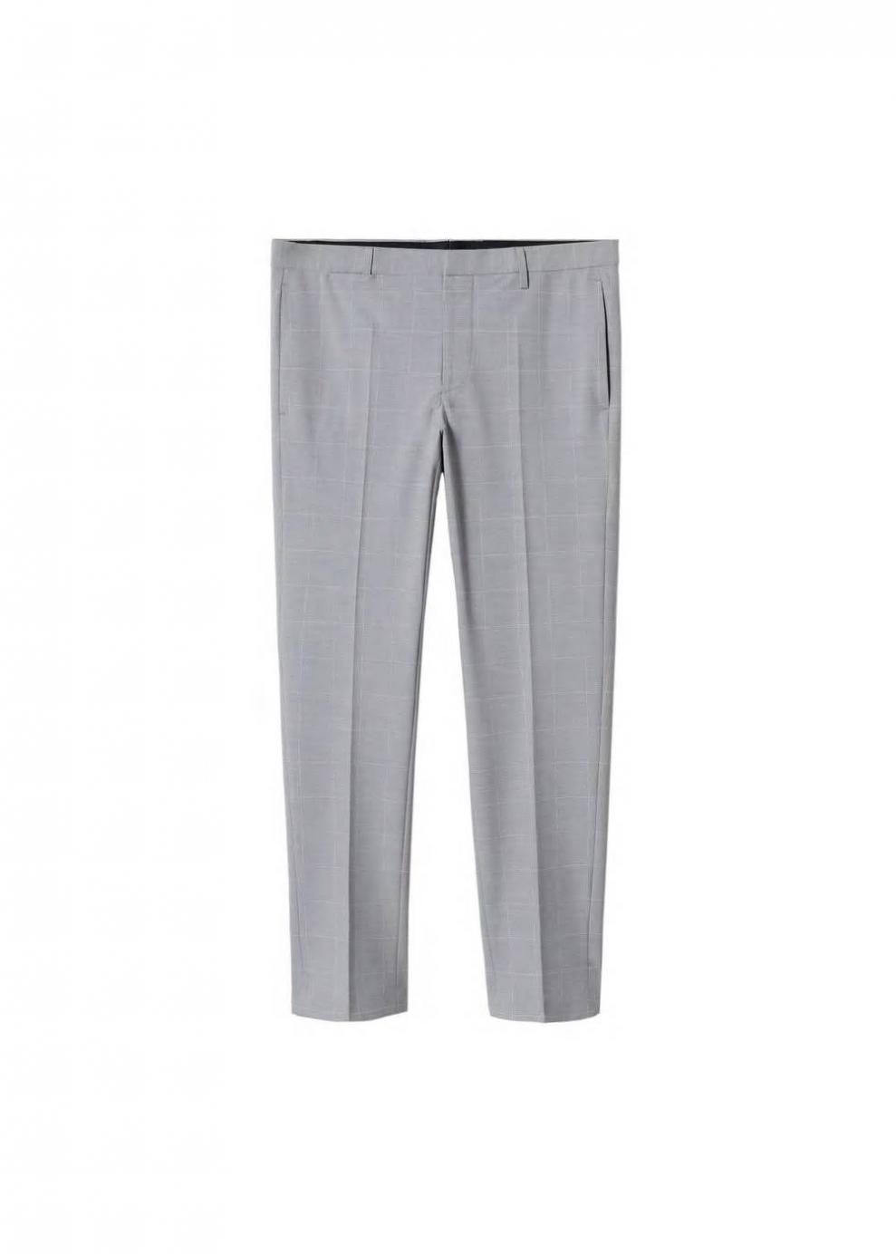 Hombre Pantalón traje super slim fit cuadros Gris | Pantalones Mango