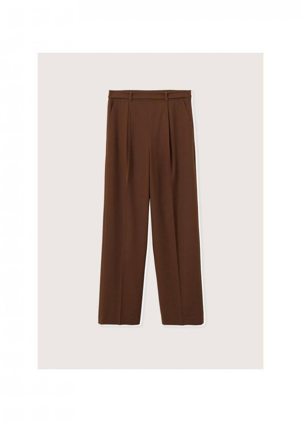 Mujer Pantalón recto tiro alto Chocolate | Pantalones Mango