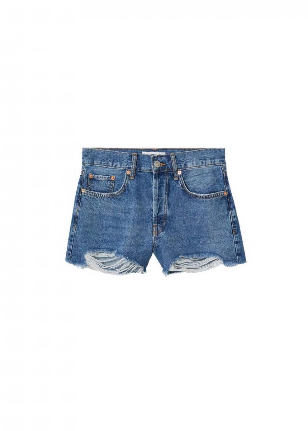 Mujer Mini short bajo deshilachado Azul Medio | Shorts Mango