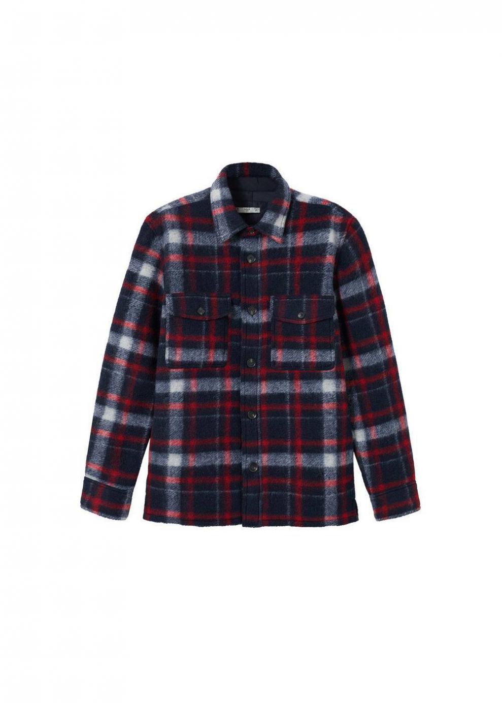 Hombre Sobrecamisa lana virgen cuadros Azul Marino Oscuro | Sobrecamisas Mango