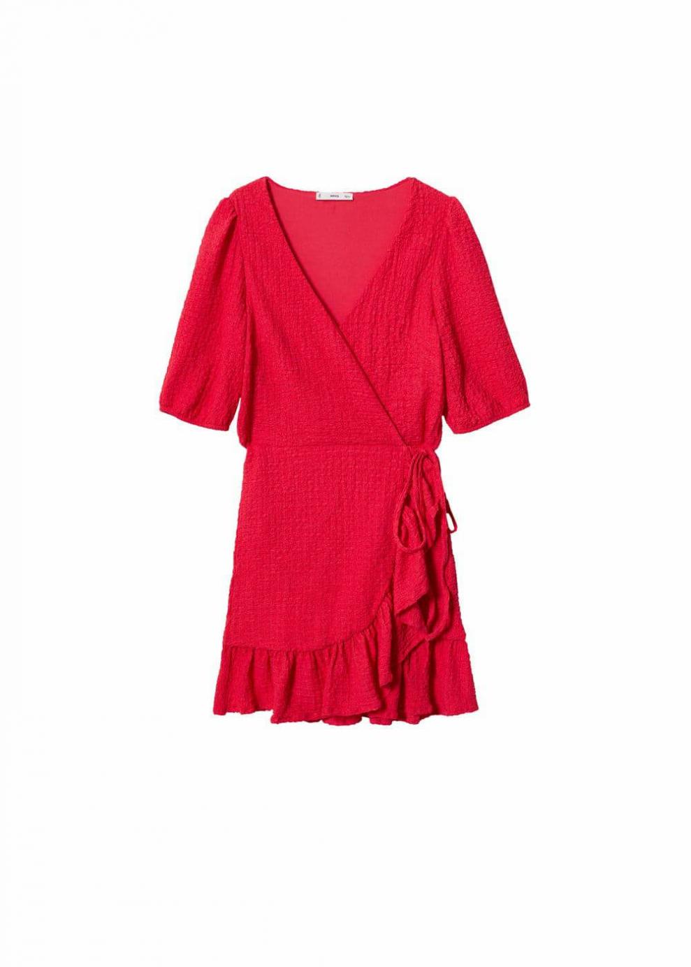 Mujer Vestido textura mangas abullonadas Fresa | Vestidos y monos Mango