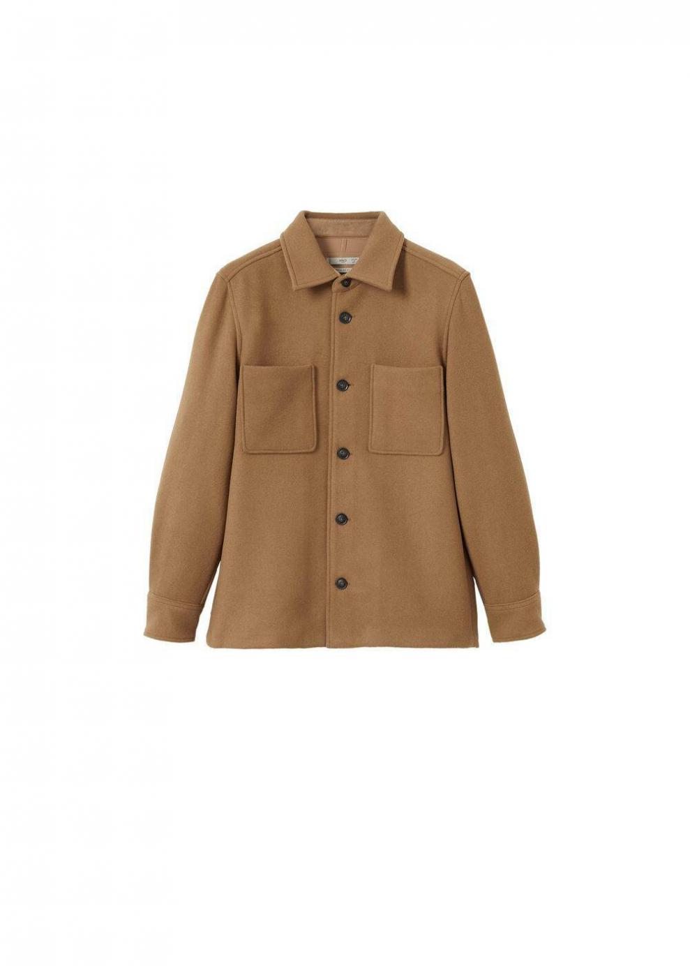 Hombre Sobrecamisa lana bolsillos Marrón Medio | Camisas Mango