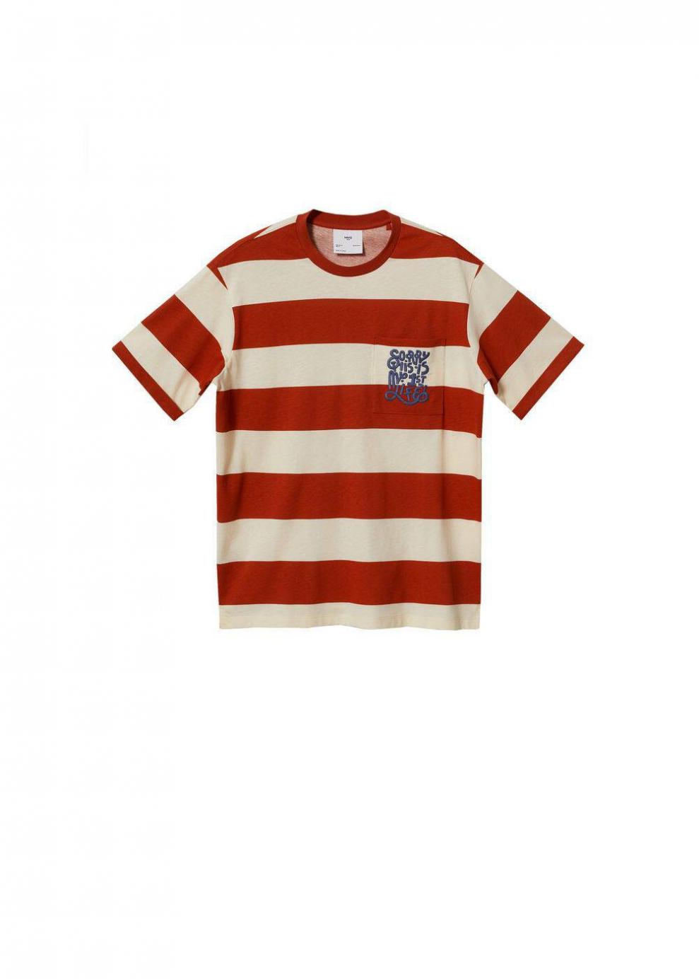 Hombre Camiseta algodón rayas Naranja | Camisetas Mango