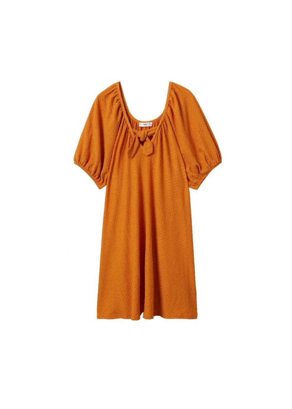 Mujer Vestido textura mangas abullonadas Naranja | Vestidos y monos Mango