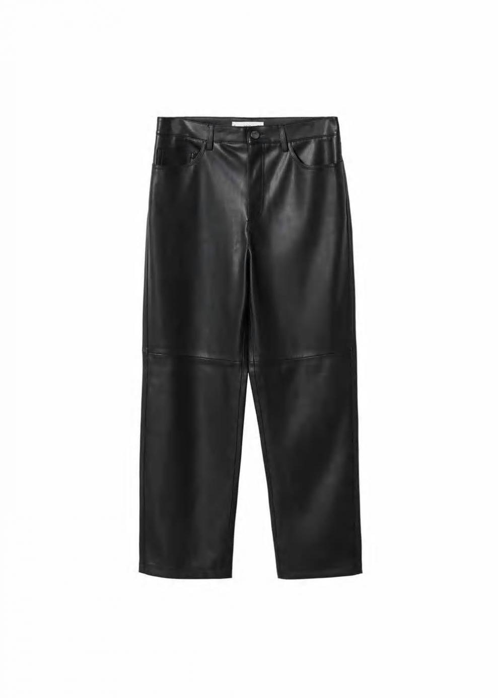Mujer Pantalón efecto piel Negro | Pantalones Mango