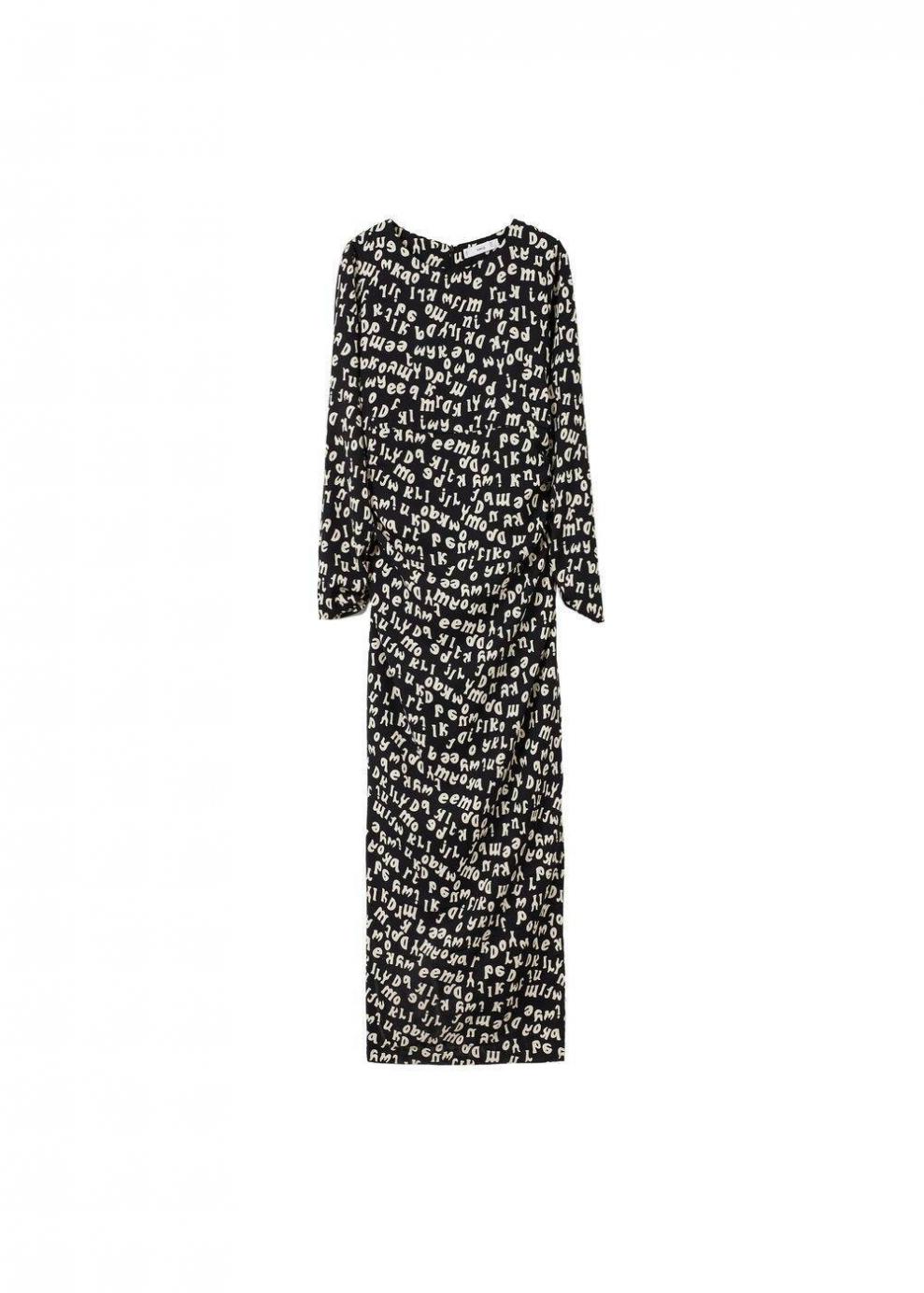 Mujer Vestido fruncido estampado letras Negro | Vestidos y monos Mango