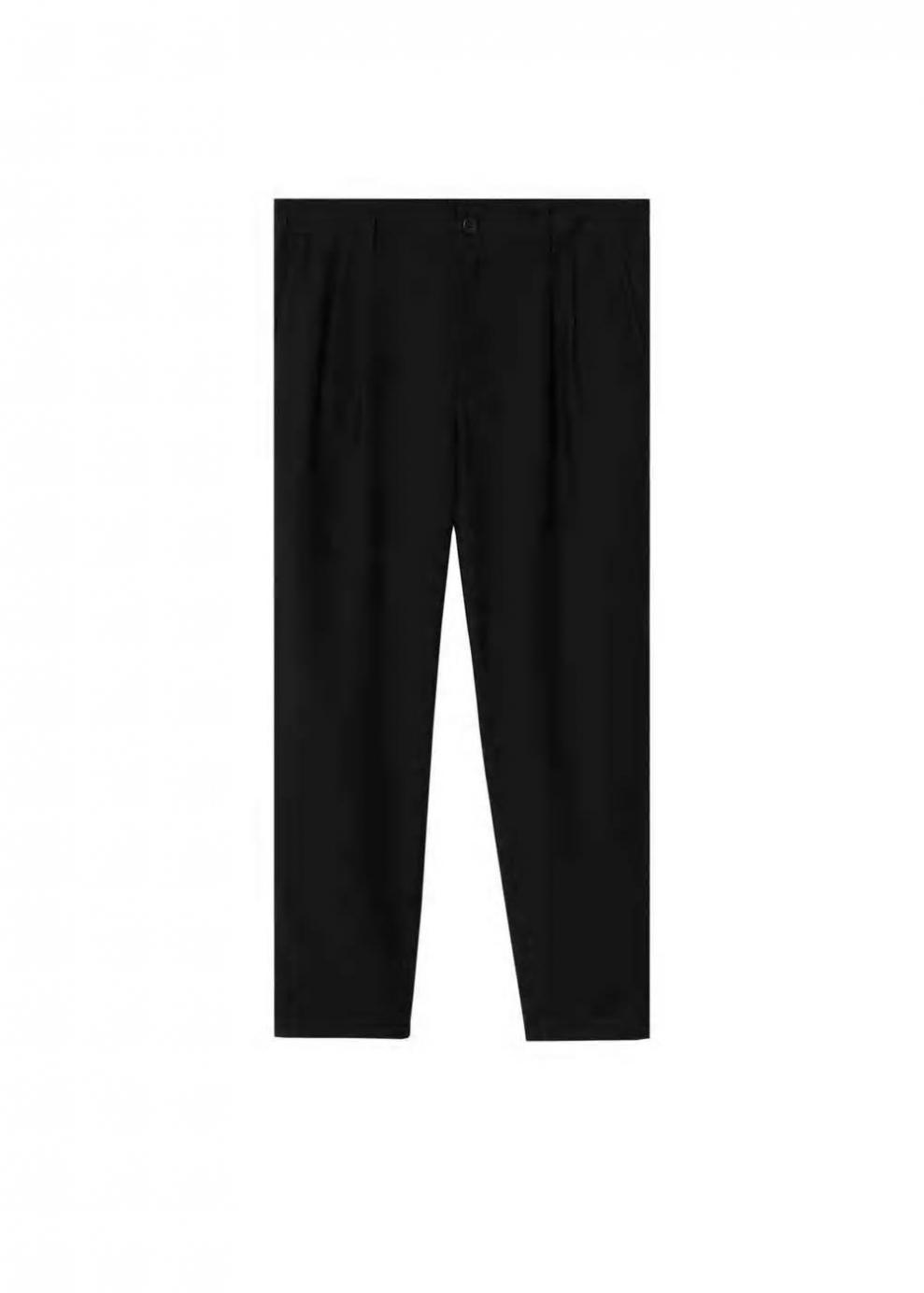 Hombre Pantalon lyocell lino pinzas Negro | Pantalones Mango