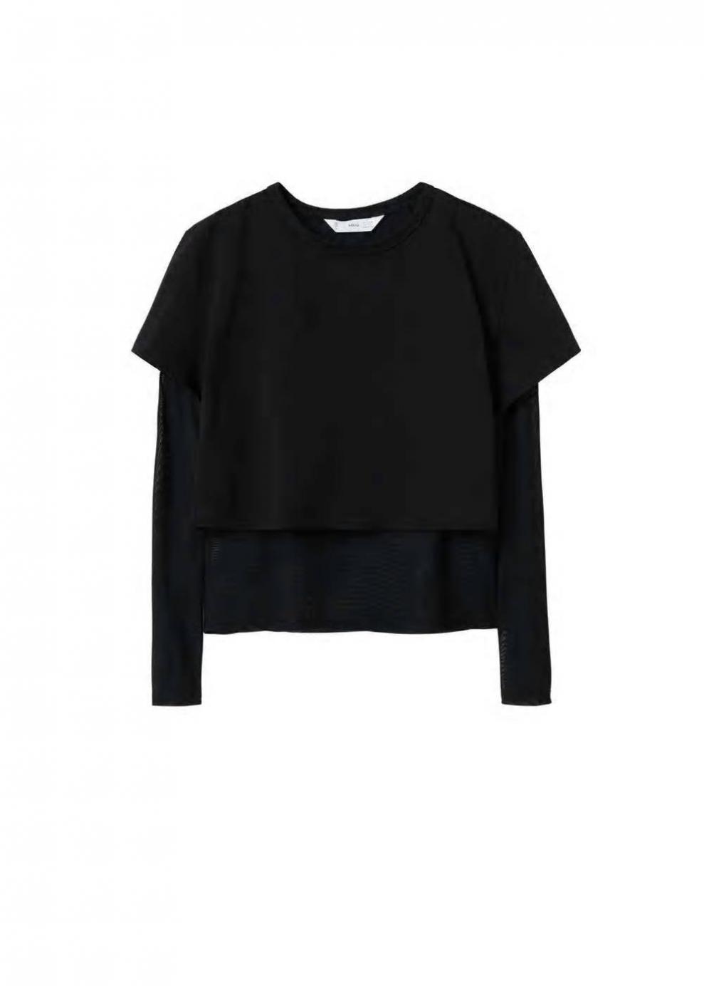 Mujer Camiseta algodón doble capa Negro | Camisetas y tops Mango