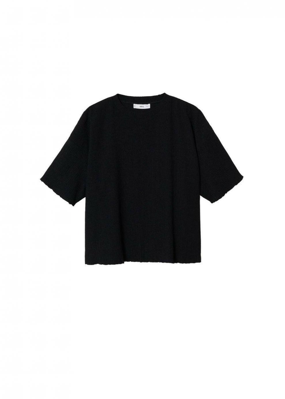 Mujer Camiseta fluida textura Negro | Camisetas y tops Mango
