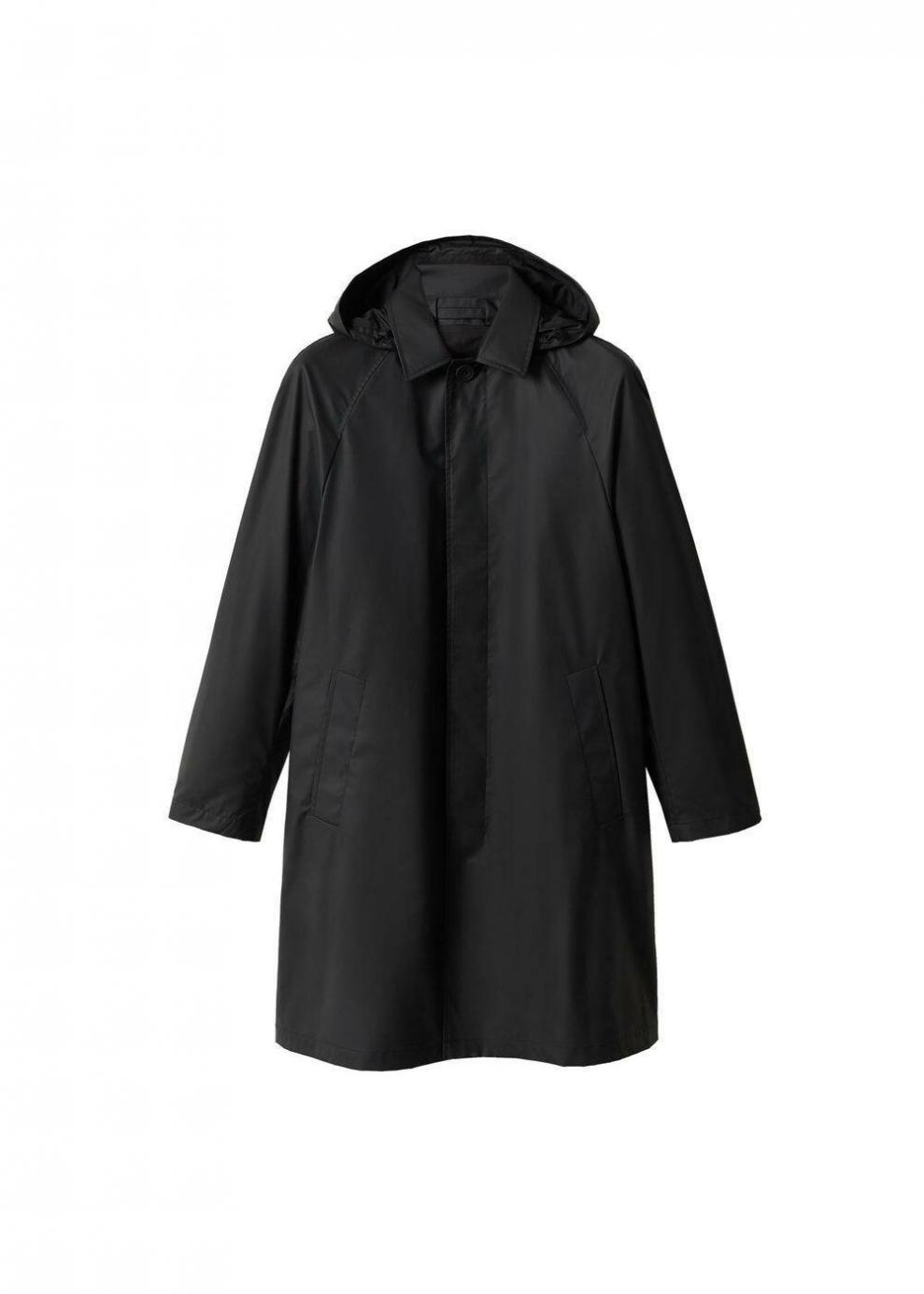 Hombre Trench impermeable capucha Negro | Abrigos Mango