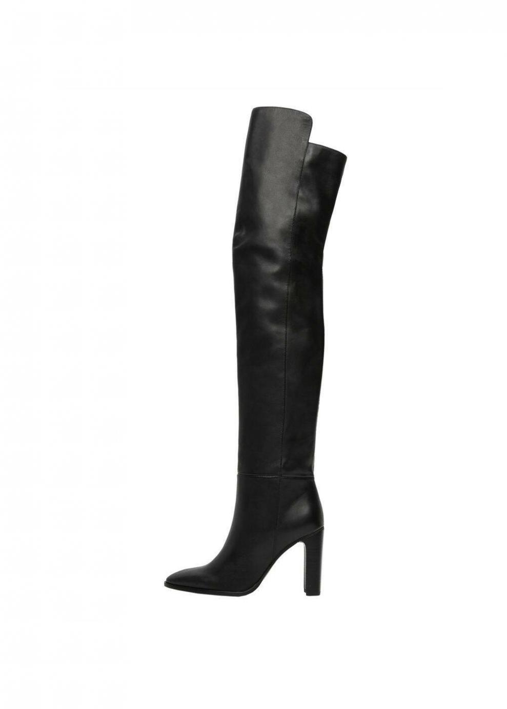 Mujer Bota alta tacón piel Negro | Zapatos Mango