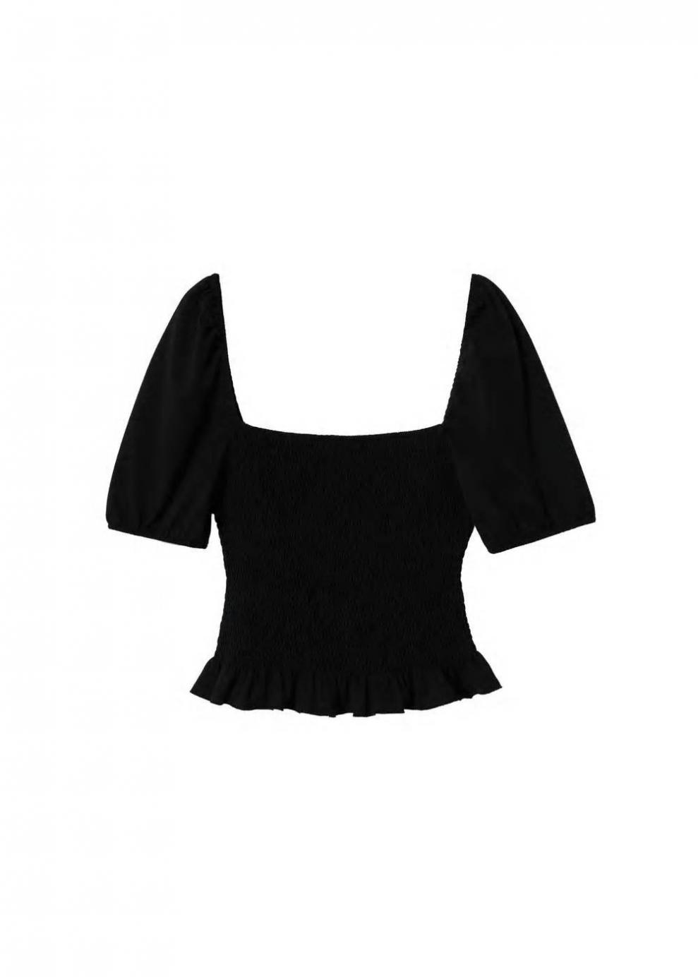 Mujer Camiseta algodón manga abullonada Negro | Camisetas y tops Mango