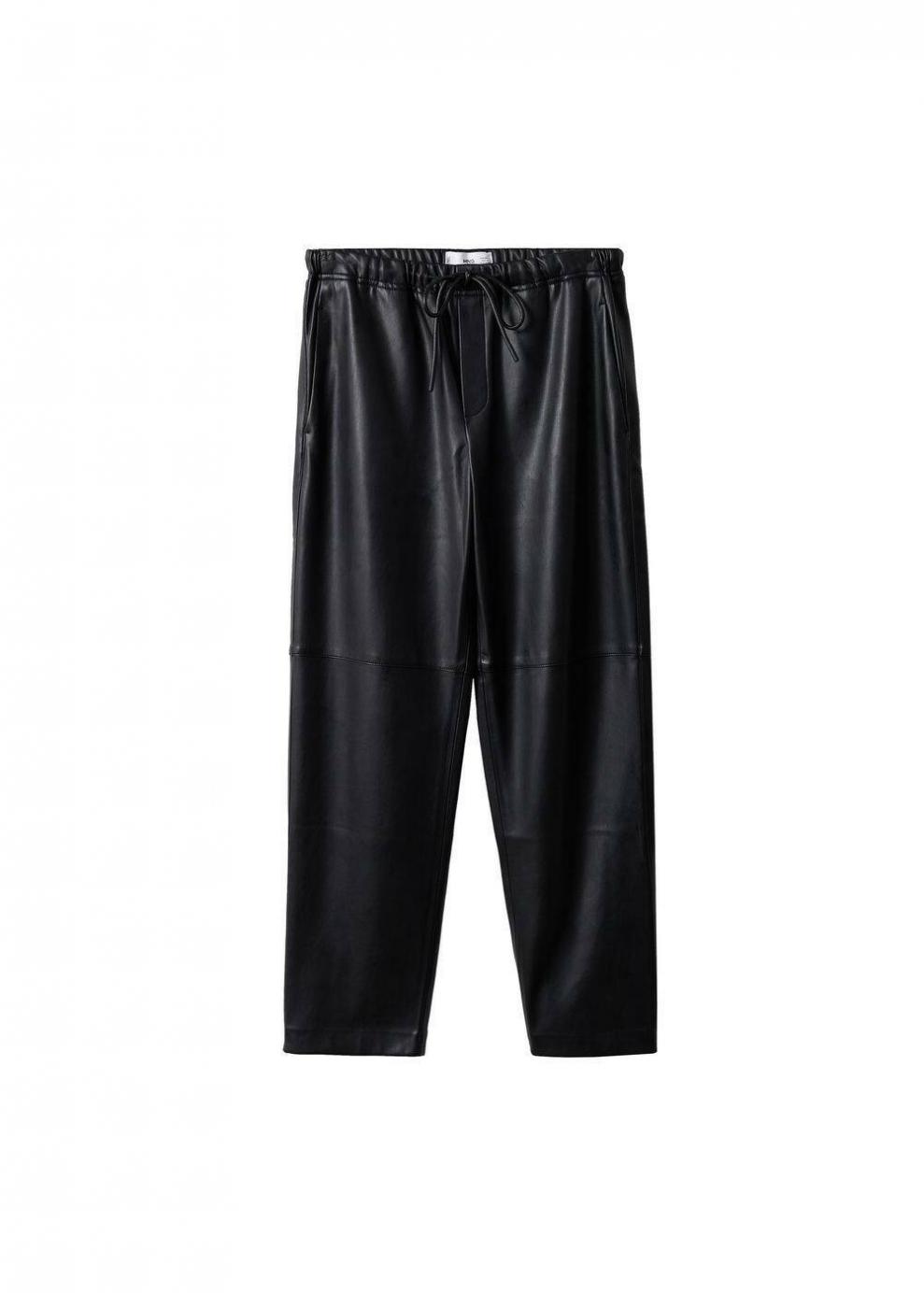 Mujer Pantalón cintura elástica efecto piel Negro | Pantalones Mango