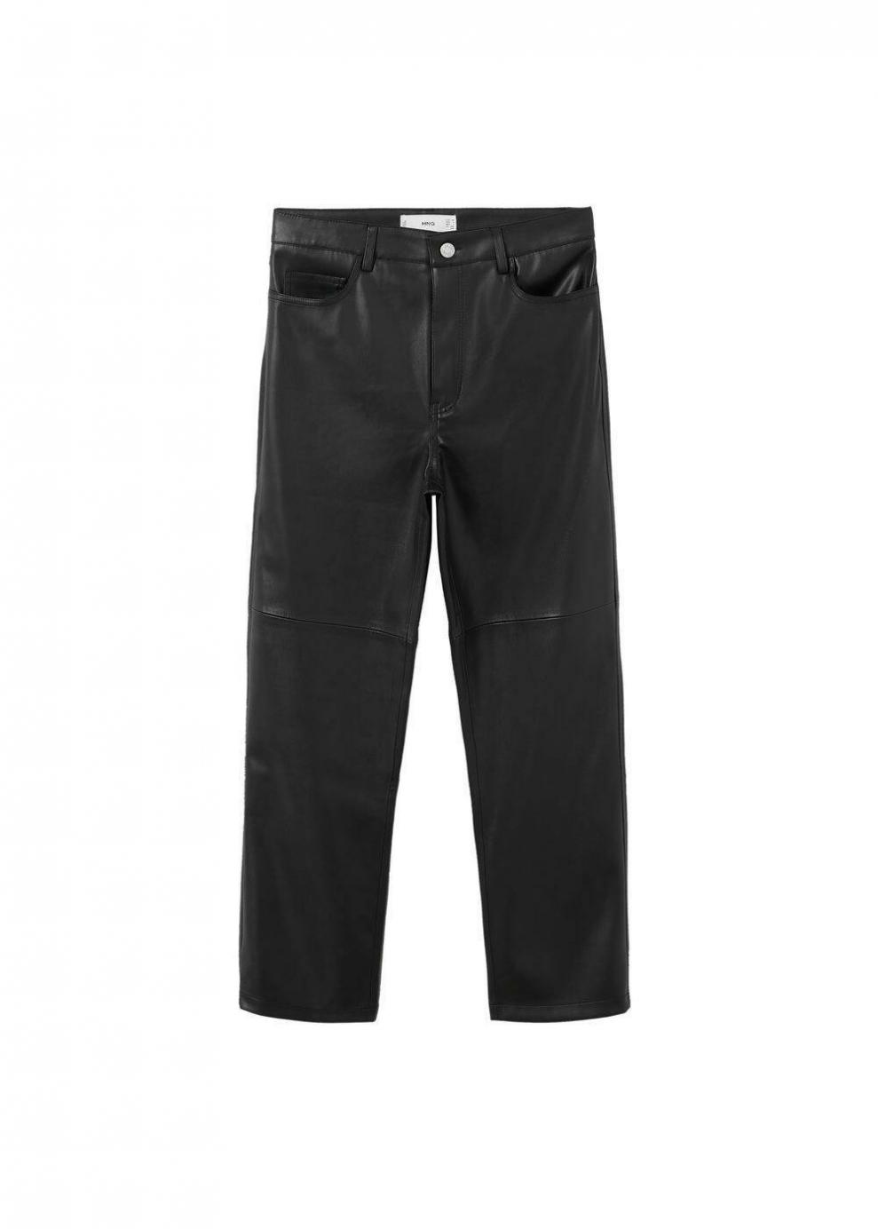 Mujer Pantalón recto efecto piel Negro | Pantalones Mango