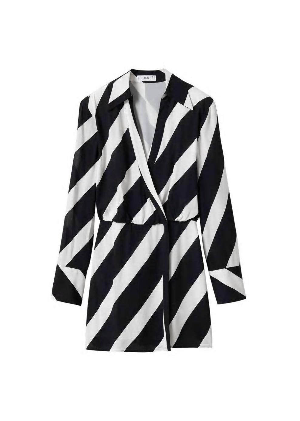 Mujer Vestido cruzado rayas Negro | Vestidos y monos Mango