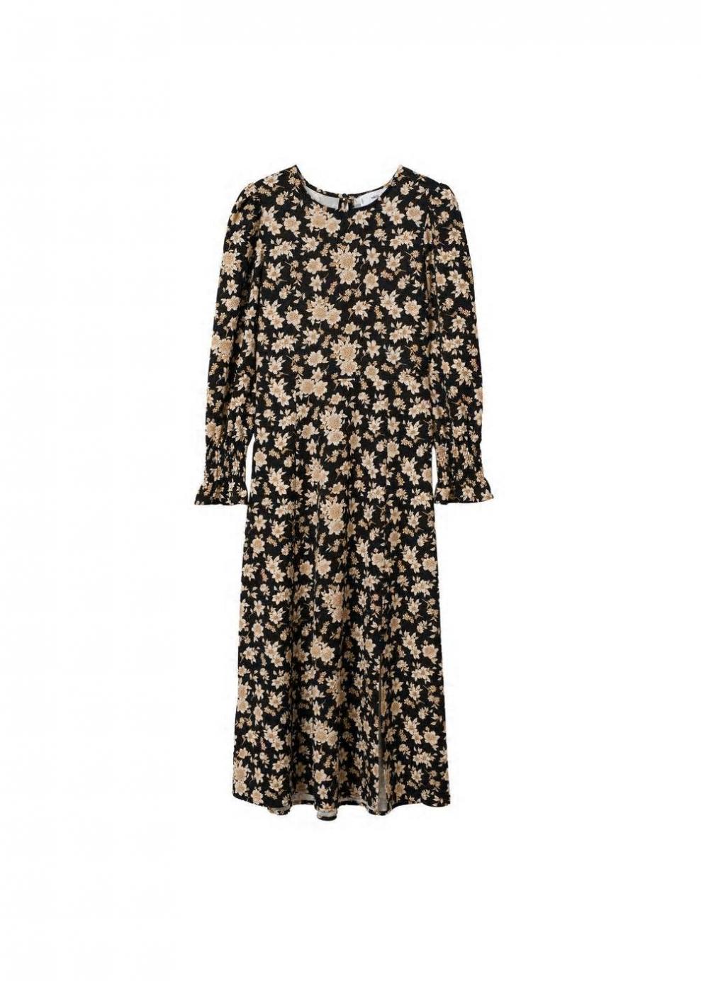 Mujer Vestido estampado manga abullonada Negro | Vestidos y monos Mango