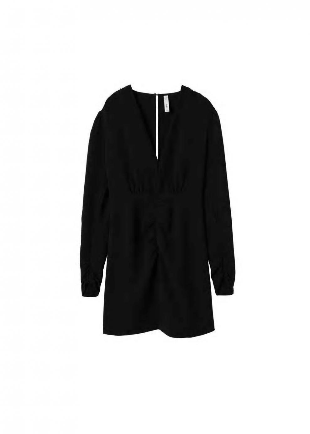 Mujer Vestido fruncido manga abullonada Negro | Vestidos y monos Mango