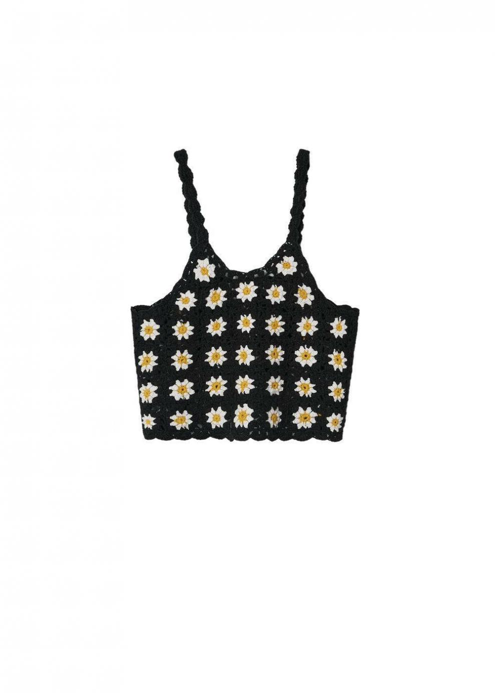 Mujer Top crochet margaritas Negro | Camisetas y tops Mango
