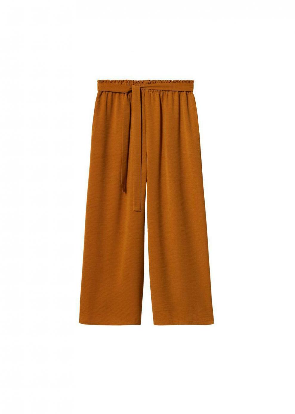 Mujer Pantalón culotte cinturón Ocre | Pantalones Mango