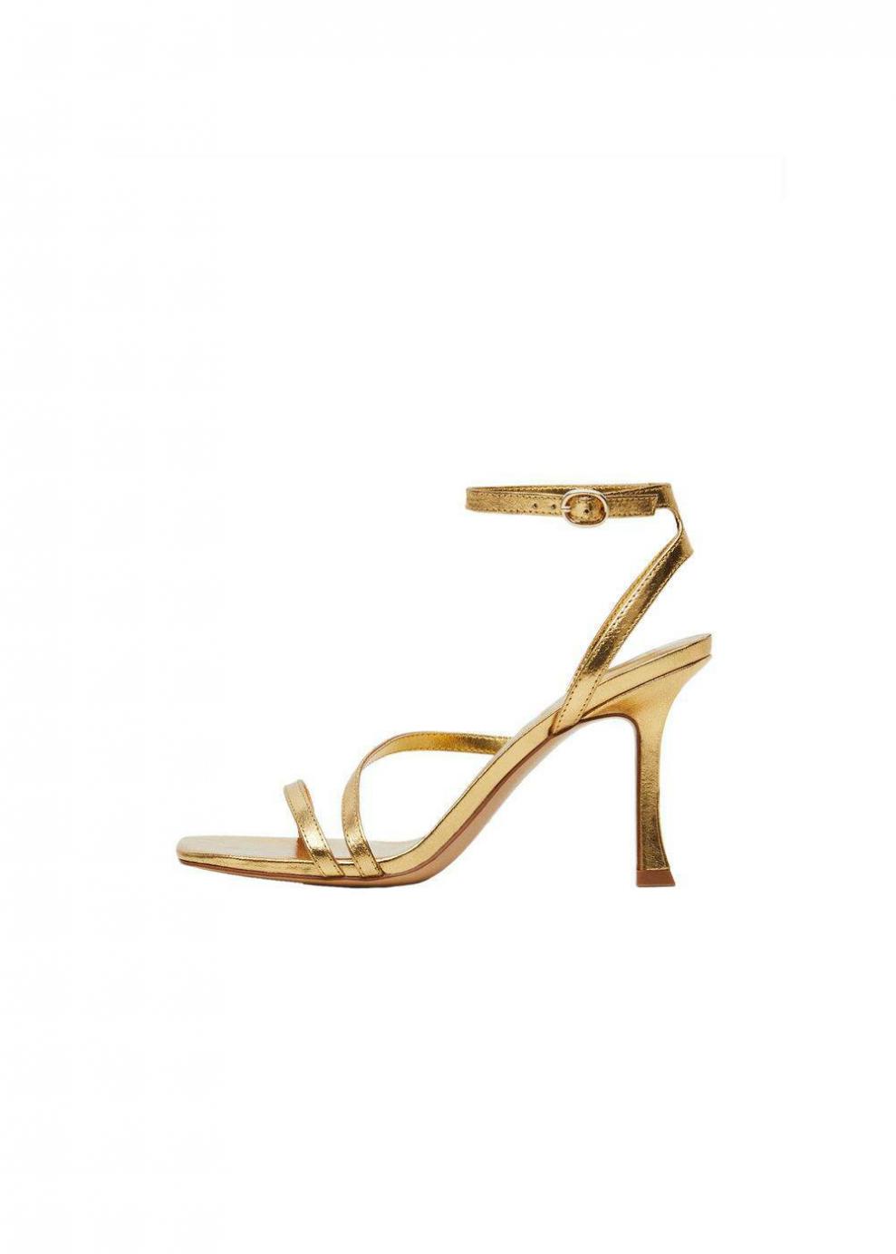Mujer Sandalia tiras metalizada Oro | Zapatos Mango