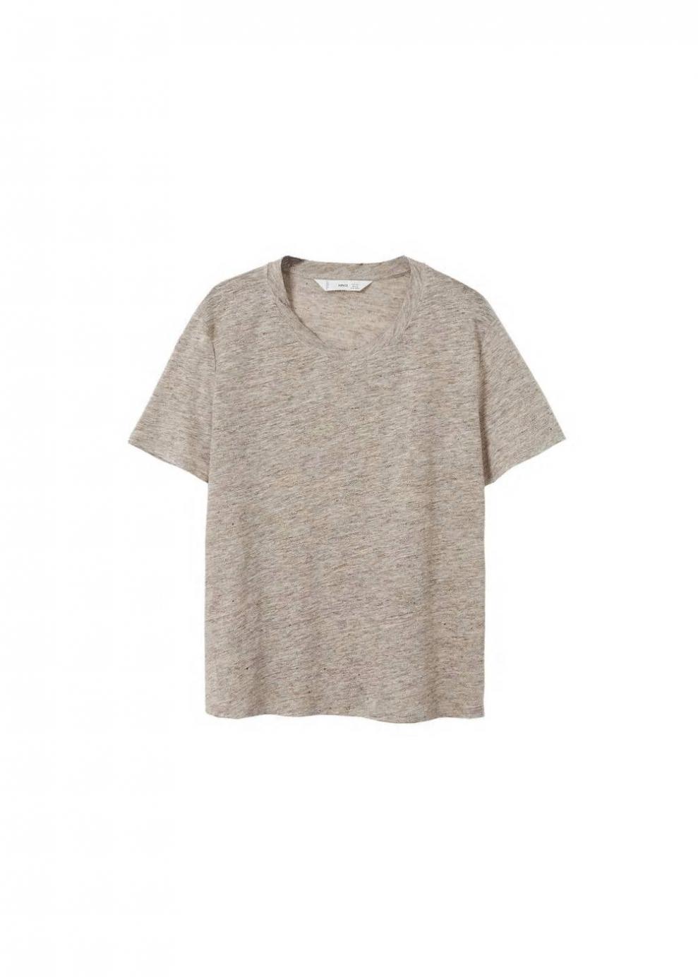 Mujer Camiseta 100% lino Gris Claro/Pastel | Camisetas y tops Mango