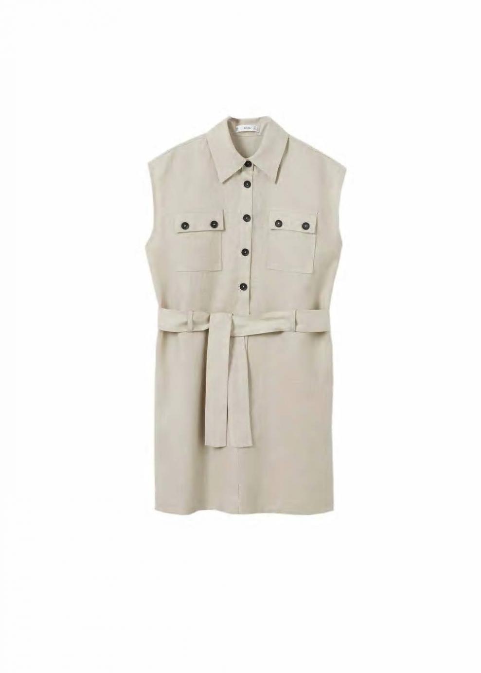 Mujer Vestido camisero 100% lino Gris Claro/Pastel | Vestidos y monos Mango