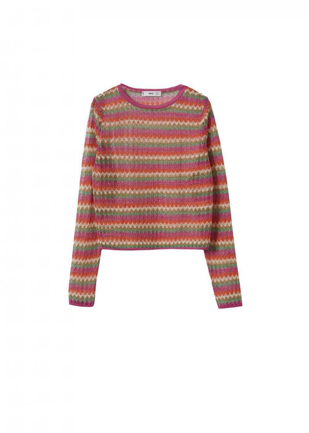 Mujer Jersey punto calado rayas Rosa | Cárdigans y jerséis Mango