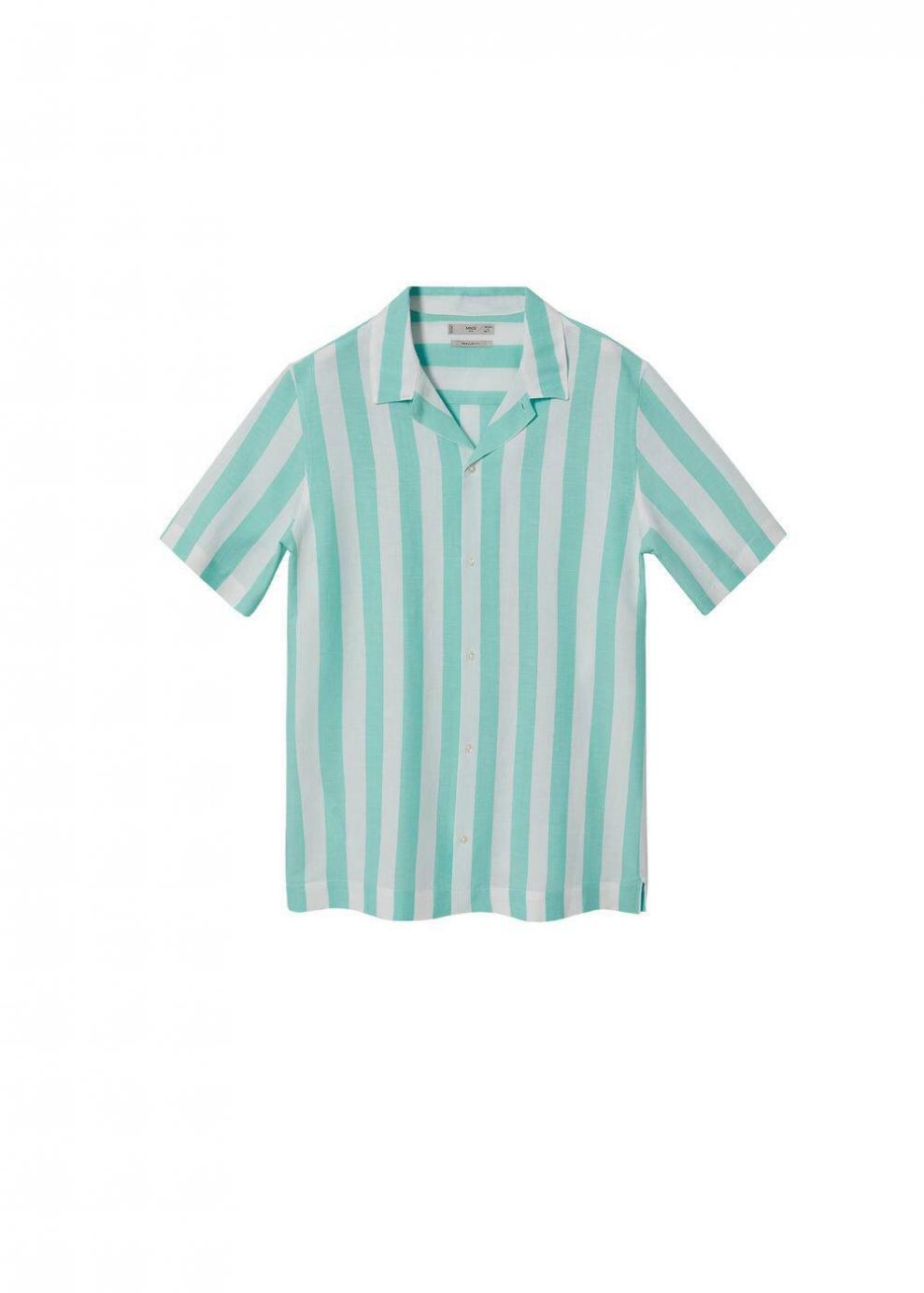 Hombre Camisa fluida lino rayas Verde Agua | Camisas Mango