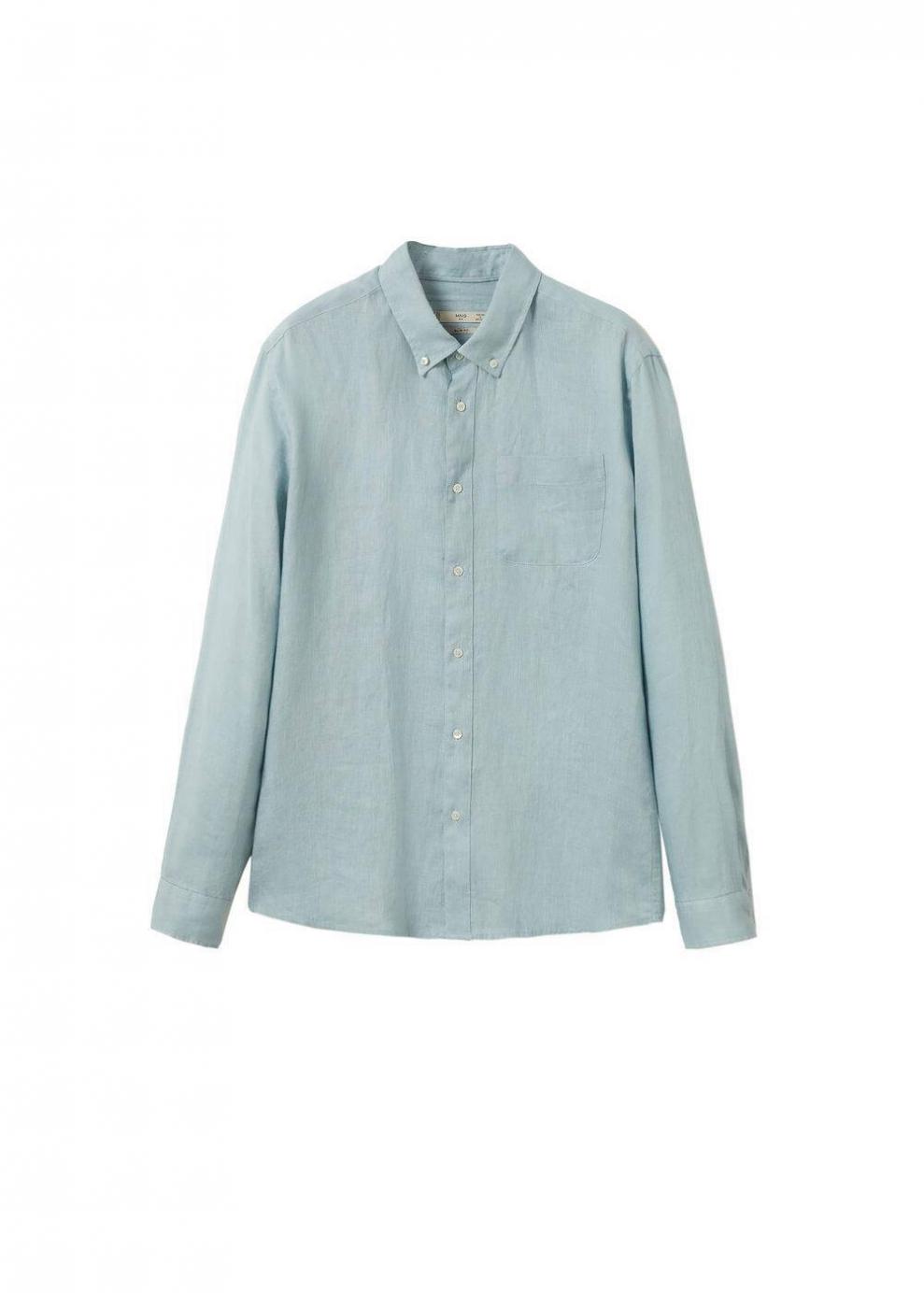 Hombre Camiseta 100% lino Verde Agua | Camisetas Mango