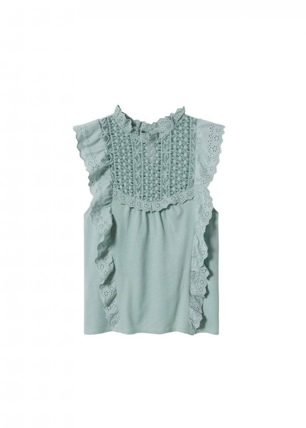 Mujer Camiseta algodón volantes Verde Agua | Camisetas y tops Mango