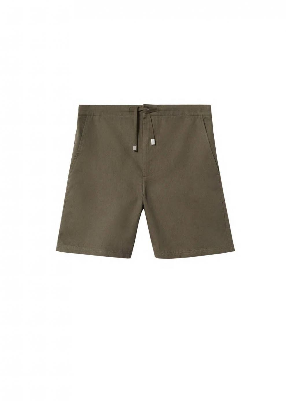 Hombre Bermuda algodón lino cordón Verde Medio | Bermudas Mango