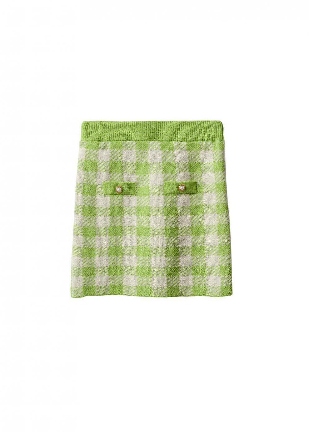Mujer Minifalda punto cuadros Verde Pastel | Faldas Mango