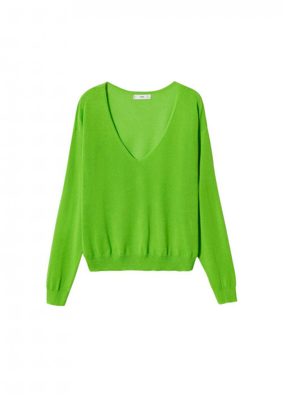 Mujer Jersey punto cuello pico Verde | Cárdigans y jerséis Mango