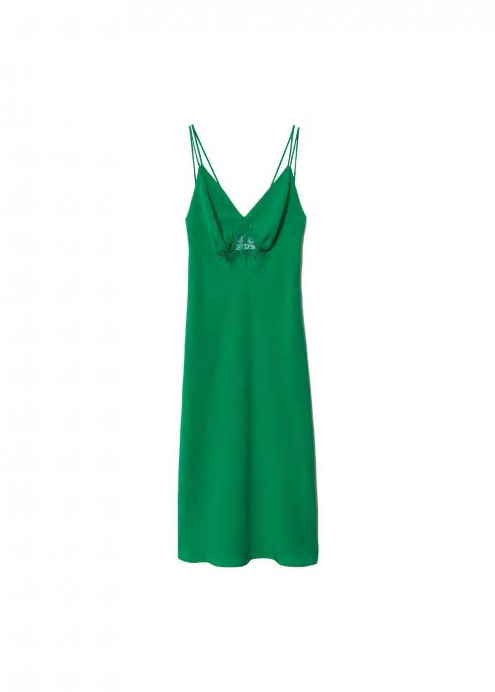 Mujer Vestido lencero encaje Verde | Vestidos y monos Mango
